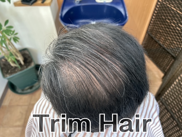 つむじからトップにかけて地肌が見えやすくなっています・・・。